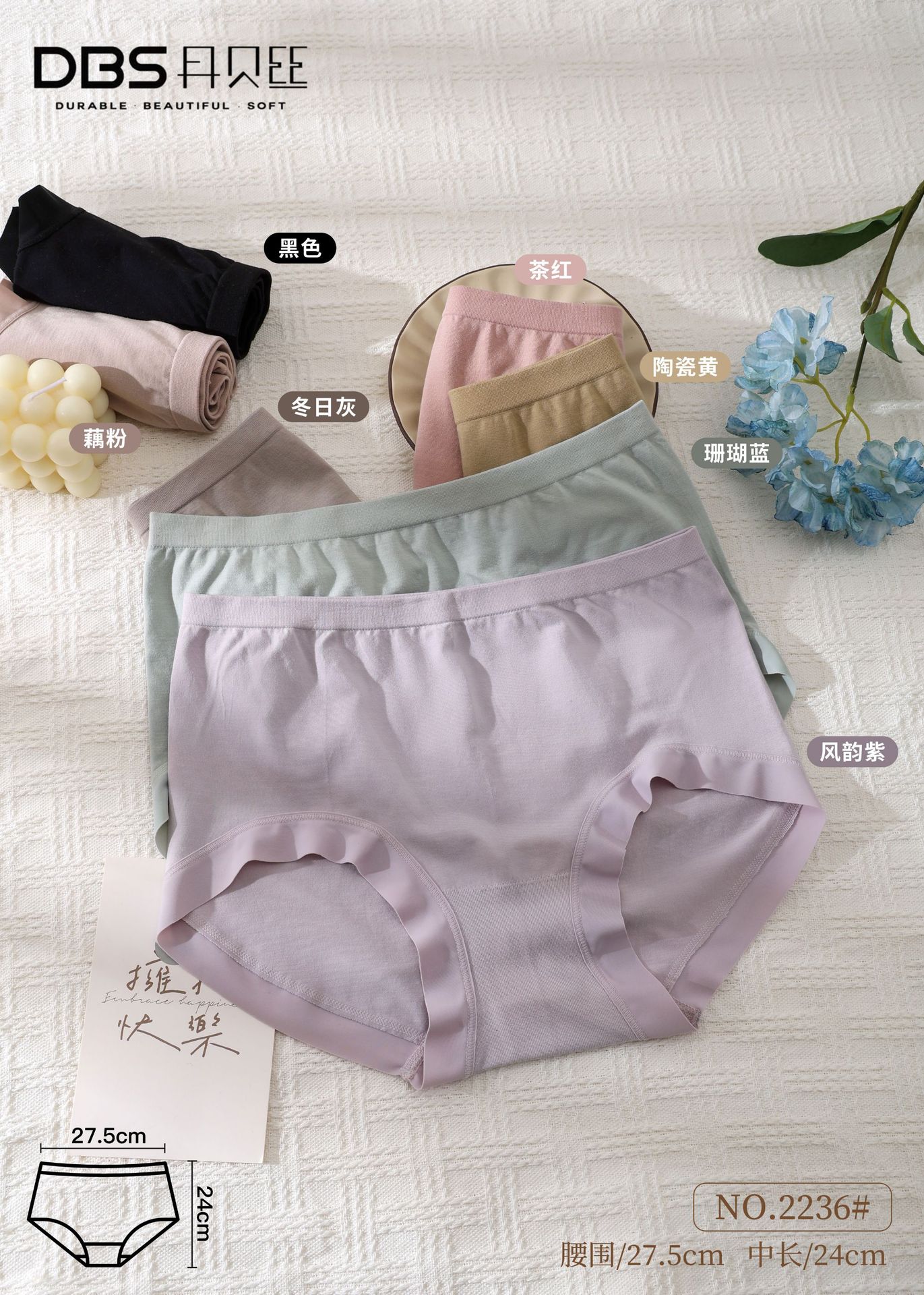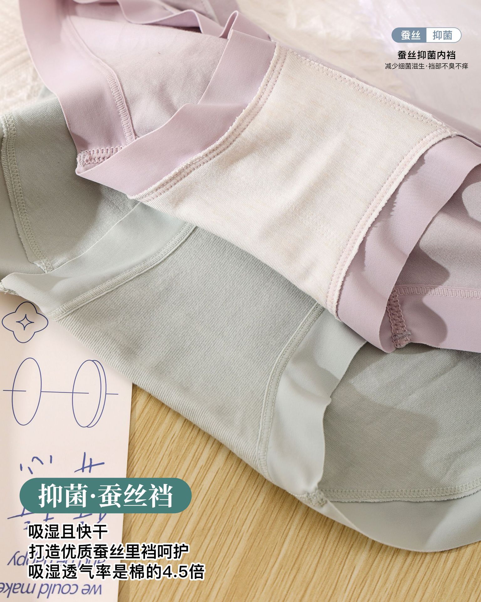 Dambeth's New 2236 Clean And Comfortable Bare Ammonia Cotton Silkworm Silk Underside Antibacterial Seamless Briefs For Women